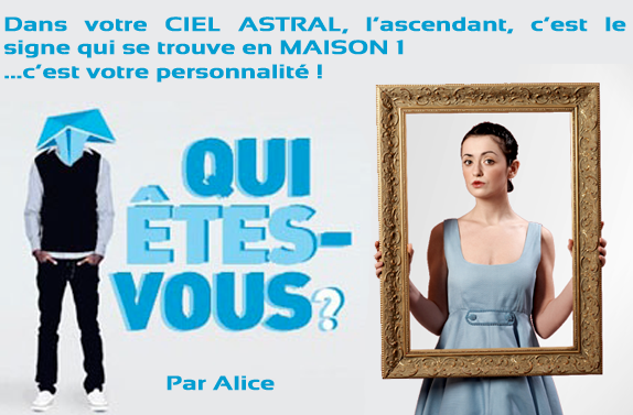 Dans votre CIEL ASTRAL, l’ascendant, c’est le signe qui se trouve en MAISON 1 …c’est votre personnalité ! En fait, il est vraiment ‘’actif’’ dans vos années de maturité, vers vos 40 ans... il se met alors ‘’en place’’ avec son cortège de Maisons … Bien entendu, l’article qui suit, est une généralité, comme tous mes articles, et ne vous concerne pas, forcément, entièrement ! Prenez le temps une fois dans votre vie, de vous faire interpréter votre CIEL ASTRAL, là, vous serez sûr que l’étude vous concerne… Mais vous aurez déjà, dans les lignes qui suivent, un aperçu de ce que l’ascendant change, par rapport à votre signe SOLAIRE (signe du zodiaque) Je vous rappelle aussi, pour info, la signification des maisons et leur ‘’Maitre’’. MAISON 1 : l’ASCENDANT, votre personnalité ! son Maitre, LE BELIER MAISON 2 : les biens matériels, son Maitre, LE TAUREAU MAISON 3 : la communication, vos frères et sœurs, les autres…son Maitre, LE GEMEAU MAISON 4 : le foyer, les parents, son Maitre, le CANCER MAISON 5 : les enfants, les plaisirs, les amants et les maîtresses, son Maitre, LE LION MAISON 6 : le quotidien, les petits bobos, les ‘’tâches’’, son Maitre, LA VIERGE MAISON 7 : les associations, le mariage, son Maitre, LA BALANCE MAISON 8 : les fins de contrats, les ruptures, son Maitre, LE SCORPION MAISON 9 : vos projets (idées), les voyages, son Maitre, LE SAGITTAIRE MAISON 10 : votre profession, votre rôle sure terre, son Maitre, LE CAPRICORNE MAISON 11 : le relationnel, son Maitre, LE VERSEAU MAISON 12 : les épreuves…ce qui vous cause tracas…son Maitre, LE POISSON Attention : les dates butoir des signes changent selon les années : faites établir votre ciel astral !*
