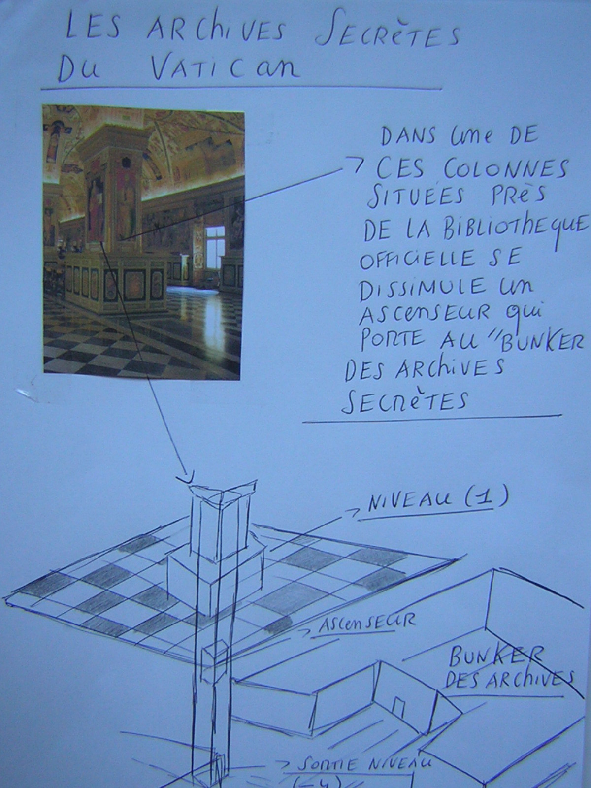 ![]() Le plus petit Etat au monde enclavé au cœur dela Cité éternelle petit par la taille mais immense par son pouvoir. Je veux bien entendu vous parler du célèbre VATICAN, demeure prestigieuse des Papes contenant environ 900 habitants et renfermant très certainement d’immenses secrets. Au delà des sujets cinématographiques et œuvres littéraires qui ont fais la gloire et la fortune de nombreux producteurs et écrivains, qu’elle étrange réalité cache réellement le Saint Siège ? Existe-t-il en son sein une « bibliothèque secrète » contenant des archives secrètes ? Je vais tenter d’y répondre par une nouvelle enquête extrasensorielle : alors suivez-moi car comme dit le dicton, tous les chemins mènent à ROME. Des artefcats incroyables de véritables légendes J’ai visité plusieurs fois ROME durant mon périple Italien où j’ai vécu sept ans de ma vie.Mais curieusement, le temps m’a toujours manqué pour visiter le Saint Siège.Cela me fait une curieuse impression de le « visiter » par voie psychique. Il est de notoriété publique que chaque état possède des services secrets ainsi que des archives secrètes. Mais celles du VATICAN ont depuis longtemps passionné tous les amateurs de sensations fortes du monde. Tout a été dit dessus mais ou s’arrêtent les fantasmes et commence la vérité ? Je vais donc aller en « pèlerinage » au VATICAN et vous ramener ce que je verrais. Me voilà « débarqué » sur la place Saint Pierre, je « franchis » les derniers obstacles qui séparent le Saint Siège de l’Etat Italien impressionnant les gardes suisses ! J’accède maintenant à l’intérieur magnifique je n’ai d e mot pour le décrire mais je suis pas là pour faire le touriste : allez au travail. Je longe de longs et magnifiques couloirs pour rejoindre le secteur de la bibliothèque. Me voici arriver dans l’antre tant convoité. Tout semble normal, de magnifiques ouvrages habitent les lieux. Pour tenter de découvrir l’entrée secrète du «BUNKER» des archives secrètes, je suis un haut dignitaire ecclésiastique qui détiens les « clefs » de la caverne d’ « Ali Baba » version Vaticane. Nous nous dirigeons vers une colonne le haut prélat « appuie » sur un élément et un dispositif laisse apparaître un mini ascenseur nous montons dedans et amorçons la descente. Il aura fallu environ 3 à 4 minutes pour rejoindre le niveau -4 qui s’affiche électroniquement sur le fronton de l’ascenseur. Nous voilà arrivés dans une salle totalement métallique et qui semble stérile à quelques mètres se situe un accès qui donne sur le cœur de l’ensemble. J’entre assez impressionné à l’intérieur les premières images que je découvre m’époustoufle ! Sous des caissons de plexiglas reposent des reliques incroyables ! Il y a là la fameuse «LANCEA LONGINI» la lance que le soldat romain LONGINUS utilisa pour s’assurer de la mort de JESUS ; elle est encore imprégnée du sang de ce dernier qui sauva la vue du légionnaire. Je tombe maintenant sur le «CHRONOVISEUR», invention extraordinaire qu’on disait légende du Padre Ernetti PELLEGRINI et qui permet de filmer le passé. A ses côtés, trois feuilles mais de grande importance LES MESSAGES DE FATIMA je m’applique principalement sur le troisième feuillet où est déposé la dernière partie : celui-ci est écrit en portugais, il ne m’est pas difficile de le déchiffrer il y a trois points cardinaux LA CHUTE DE L’ EGLISE, LE DEBUT D’ UNE NOUVELLE ERE. DE GRAND BOULVERSEMENT MONDIAUX. Mais les surprises ne s’arrêtent pas là, voilà maintenant un document prouvant la rencontre de 1954 entre le 34ème président des Etats –Unis DWIGHT EINSENHOWER et des extraterrestres surprenant l’église et au courant d e l’existence d’autre vie ! Et encore plein d’autres artefacts certains de notoriété mondiale, d’autres plus inconnus mais certainement de très grande valeur. Je vais quitter là cet endroit « magique » et je vais aborder dans mon enquête suivante la DISPARITION MYSTERIEUSE DU PRINCE DU CIEL je veux parler de l’inoubliable présentateur de la fameuse chasse au trésor PHILIPPE DE DIEULEVEUT durant les années 1980. Michel Genovese pour